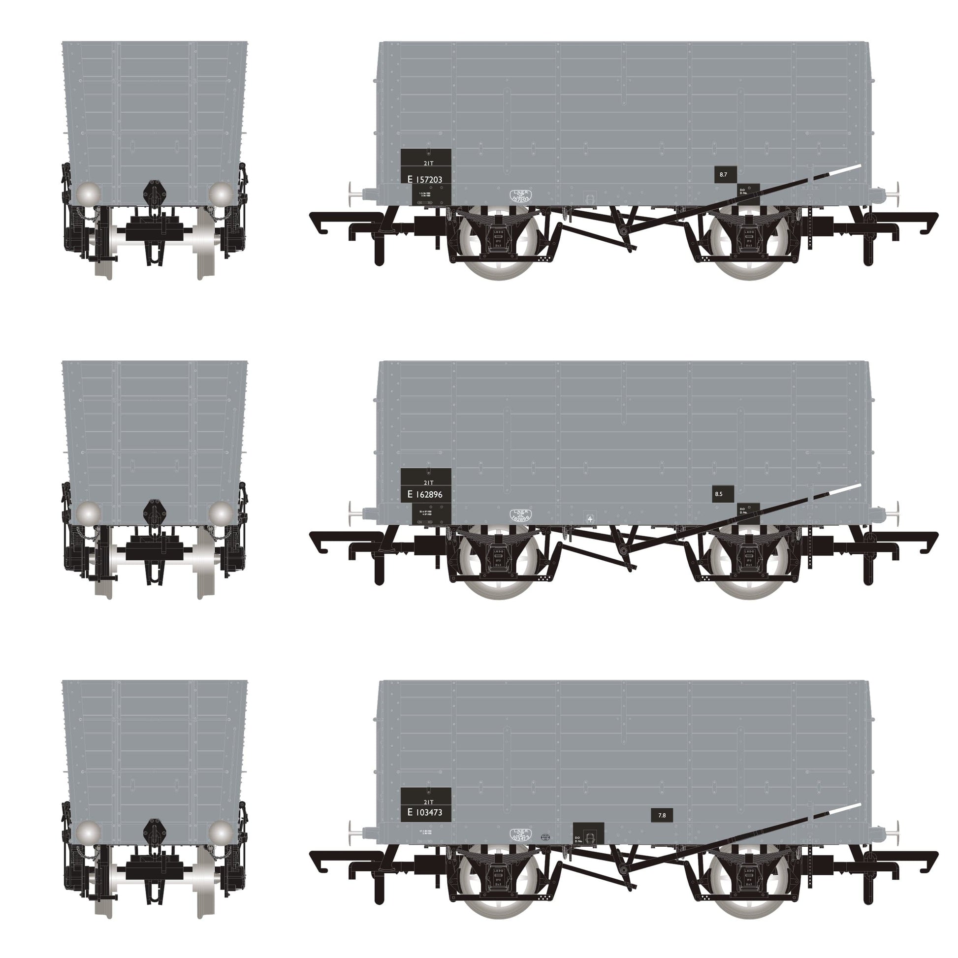 - Two types of end stanchion tooled: NER wooden or LNER metal ‘T’ bar type from 1925 onwards. After 1926, the bottom sections of any remaining wooden stanchions were removed.