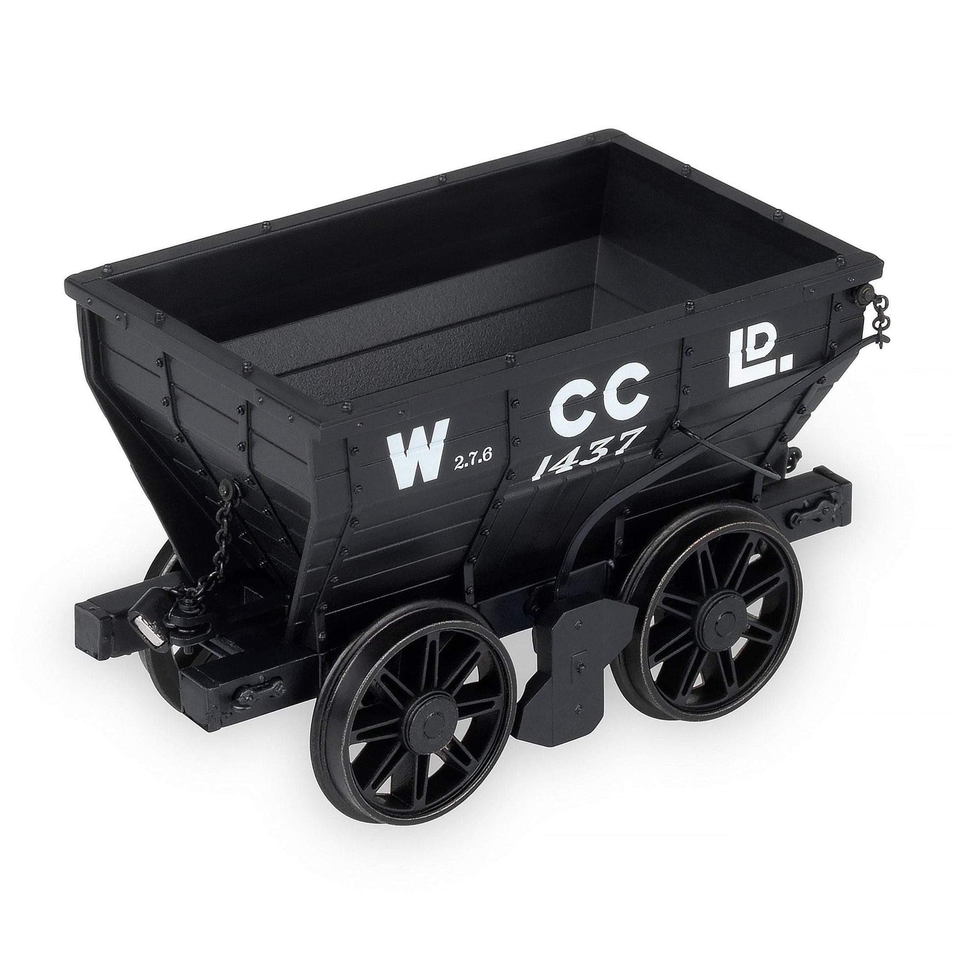 - Wagons connected via an all new link fine chain with Neodymium magnetic heads, connected at the wagon via prototypical cotter pin coupling.